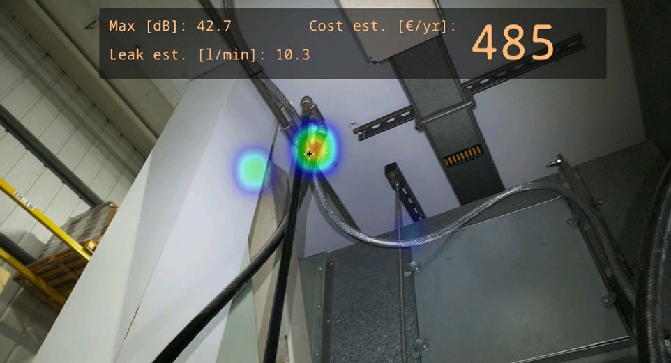 The final stop was the facilities maintenance workshop where the compressed air feed was obscured from view, above suspended ceiling tiles where 2 leaks were detected, again silent and undetectable without ultrasonic imaging equipment.
