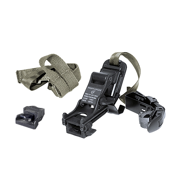 The MICH Helmet Mount Assembly allows front-mounted, hands-free use of a night vision system when attached to Modular Integrated Communications Helmets (MICH). Standard fit adjustments and flip up/down functionality give the user complete control over their set-up. Adapter #59 installs onto the Mini Rail of a night vision monocular and connects the device to bayonet-type headsets and helmet mounts.