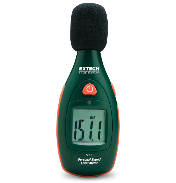 The Extech SL10 Pocket Series Sound Meter is easy to use and easy to stow. Keep one handy for whenever you need to take a quick sound level measurement. It measures sound level from 40 dB to 130 dB with a frequency weighting for human hearing and fast response time of 125 ms. Complete with 9 V battery.