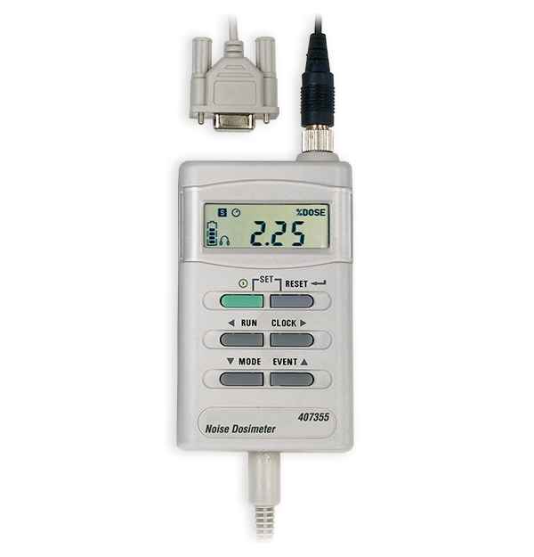 The Extech 407355 is a Personal Noise Dosimeter/Datalogger which performs OSHA and IEC noise accumulation surveys to measure total sound exposure over an 8-hour period. It datalogs up to 4500 readings when used as a sound level meter, while also capable of storing up to 5 dosimeter surveys. Data includes start and stop time, percent dose, TWA, and peak flags. Complete with belt clip, clip on 1.3 cm (0.5 in) microphone with a 0.8 m (2.6 ft) cable, software, 4 AAA batteries, mini screwdriver, and carrying case.