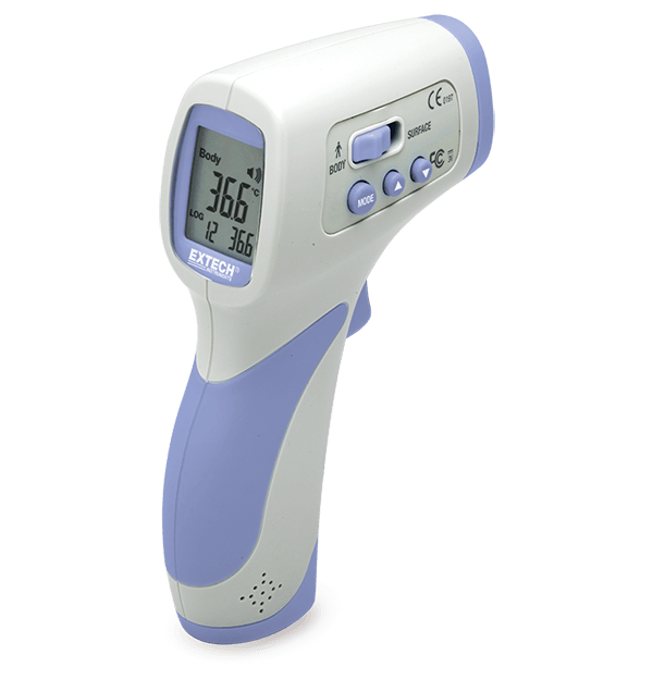 The IR200 is ideal for quickly screening individuals for elevated skin temperature. This infrared thermometer has a non-contact design that eliminates the need for replacement probe covers and other supplies. The IR200 is accurate to 0.5°F (0.3°C) with 0.1°F/°C resolution when measuring skin temperatures between 89.6°F to 108.5°F (32.0°C to 42.5°C). Adjustable alarm alerts user visually and audibly when temperature exceeds programmed limit. Optimum measurement distance of 1.9 in. to 5.9 in. (5 to 15 cm). Move the Body/Surface function switch to the Surface position for non-contact surface temperature measurements from 32°F to 140°F (0.0°C to 60.0°C). With a fast response of just 0.5 seconds, users can simply press the trigger and read temperature on the large backlit LCD display. Memory stores up to 32 readings for easy recall. Comes complete with 2 AA (1.5V) batteries and pouch. Note: This thermometer is intended for screening individuals or monitoring an individual for potential elevated skin temperatures. It is not a substitute for a clinical thermometer. Always use a clinical thermometer when high accuracy body temperature measurements are required.