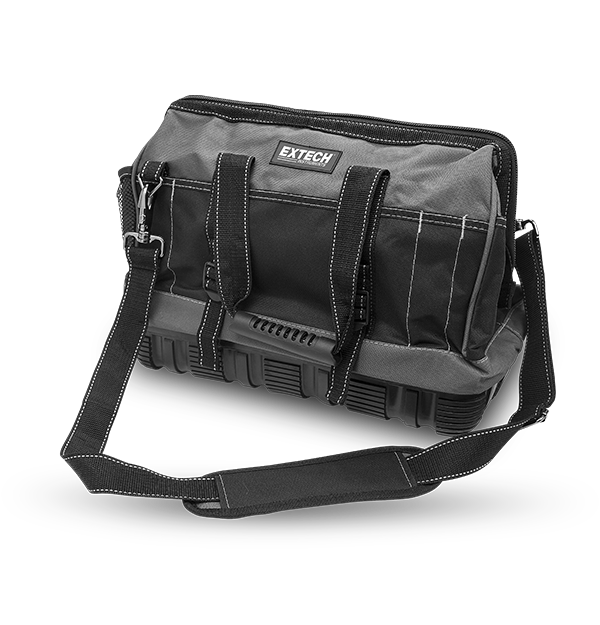 Extech’s rugged, CA-EXTECHTB Professional Tool Bag is designed with a rubberized bottom and heavy duty fabric without compromising aesthetics. Numerous inner compartments offer safe storage of meters while the outer pockets keep tools secure and handy. This large durable bag also offers a comfortable shoulder strap for easy toting.