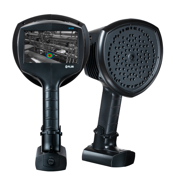 The FLIR Si124-LD acoustic imaging camera can help you locate pressurized leaks in compressed air systems up to 10 times faster than traditional methods. Built with 124 microphones, this lightweight, one-handed solution produces a precise acoustic image that visually displays ultrasonic information, even in loud industrial environments. The acoustic image is transposed in real time on top of a digital camera picture, which allows you to accurately pinpoint the source of the sound. The Si124-LD features a plugin that enables you to import acoustic images to FLIR Thermal Studio suite for offline editing, analysis, and advanced report creation. Field analysis and reporting can also be done using the FLIR Acoustic Camera Viewer cloud service. Through a regular maintenance routine, the FLIR Si124-LD can help facilities save money on utility bills and delay the expense of installing new compressors.