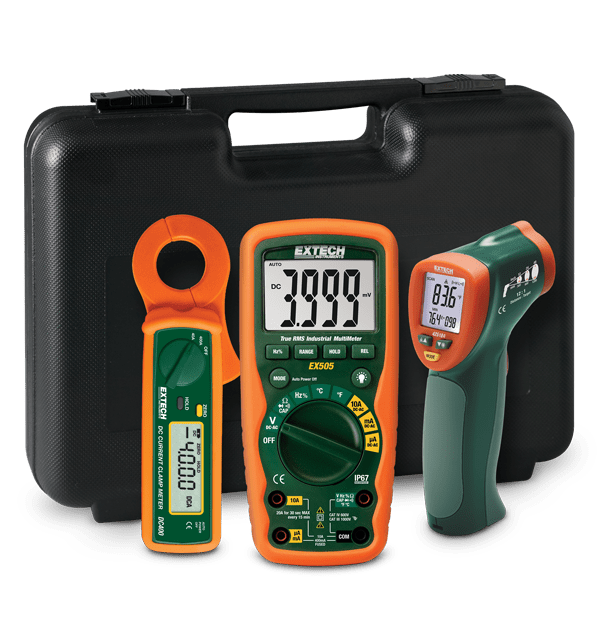 The Extech AUT600 is an automotive testing and troubleshooting kit. This Fleet Test Kit is ideal for trucks, buses, and RV's with AC auxiliary power systems. The AUT600 includes the Extech EX505, DC400, and 42510. This product is complete with test leads, Type K bead wire probe, Type K to banana input adapter, batteries, and a hard carrying case.