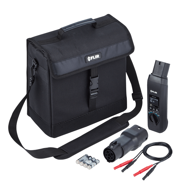 The FLIR EV45-T2 EV charger test adapter is equipped with a built-in IEC 62196-2 Type 2 plug, making it ideal for Type 2 charging stations or AC wall connectors. Designed for Level 1 and Level 2 electric vehicle AC charging stations (EVSEs), it is perfectly suited for both residential and commercial use. Maintain EV charging station safety by checking Protective Earth (PE) and electrical wiring, Test charge current interrupt device (CCID) to ensure electrical safety, Verify EV Charger maximum current output, Output charging voltages and frequency for further performance and safety checks, with the option to use the FLIR DM286 IGM multimeter for a comprehensive kit solution. The Bluetooth® FLIR METERLiNK® technology in the DM286 allows you to connect wirelessly to the METERLiNK® app on mobile devices, enabling instantaneous documentation, reporting, and sharing of results.