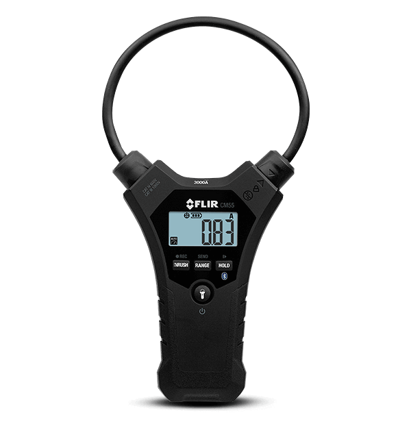 The FLIR CM55 is an ergonomic tool designed to simplify difficult current measurements. Made with a narrow, 10-inch (25.4cm) flexible coil clamp, the CM55 lets you easily take measurements in tight or awkward spots— a difficult task with a traditional hard jaw clamp. With Bluetooth® communication for remote viewing and data transfer to iOS® and Android™ devices via the FLIR Tools Mobile app, you can analyze and share data fast right from the jobsite.