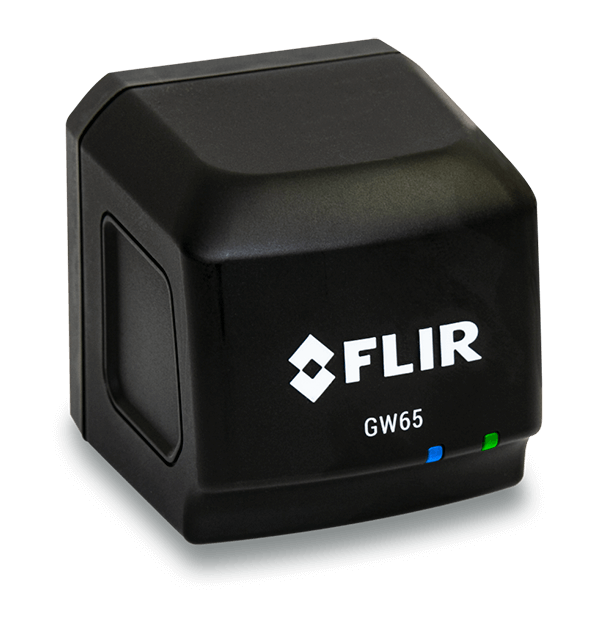 The FLIR GW65 Remote Monitoring Gateway is part of the FLIR SV87-KIT Vibration Monitoring Solution. It receives vibration and temperature data from SV87 sensors via Bluetooth® and sends data to the Windows and mobile apps using Wi-Fi®. The GW65 gateway also stores the data to its internal memory in case of Wi-Fi outage.