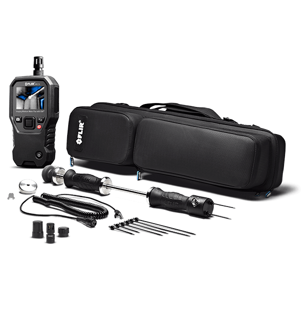 Get greater flexibility and minimize downtime in the field with the FLIR MR176-KIT5. The MR176 helps you quickly target moisture issues with Infrared Guided Measurement technology, and has options to take either intrusive or non-intrusive measurements with its integrated pinless sensor and external pin probe. The kit also includes a hammer/wall cavity probe combo for additional measurement applications, and a replaceable temperature and relative humidity meter built with the same durability as the MR176 itself.
