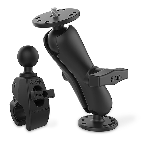 This mounting kit contains RAM Mounts Double Ball Mount and Tough-Claw™Medium Clamp Ball Base (manufacturer P/N: RAM-101AU and RAP-404U). Use these products to mount a camera on a table, a wall, or a tube. Note that FLIR Exx-Series cameras cannot be attached to a wall using this mounting kit. Weight capacity: 1.8 kg (4 lb)